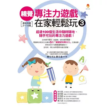 活用書中順序、找重點、視知覺與閱讀、閱讀與抄寫及生活應用5大「視覺認知專注力」主題遊戲,將有助孩子培養生活自理能力,並有效、專注地學習新知識及課業。